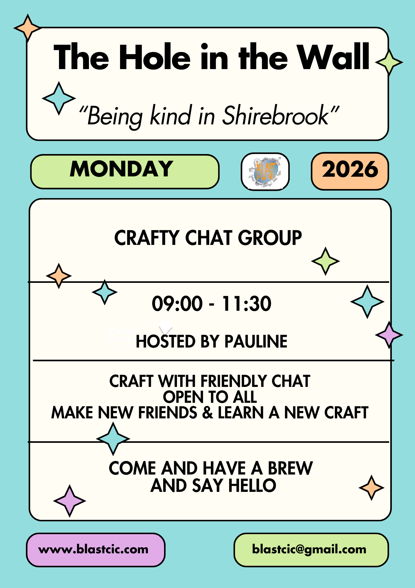 BLAST are constantly looking to increase the variety and improve the quality of activities available within the local community. We provide FABULOUS spaces for events and activities to take place, which are co-designed with local people. Come and check us out :)